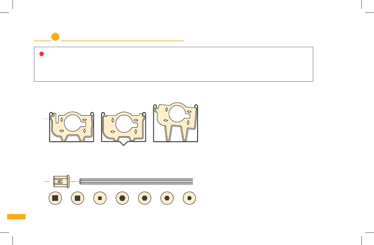 2a. Sélectionnez les adaptateurs de rail de suspension (B) qui s’ajustent le mieux à la forme et taille du rail de votre store. Gardez-les