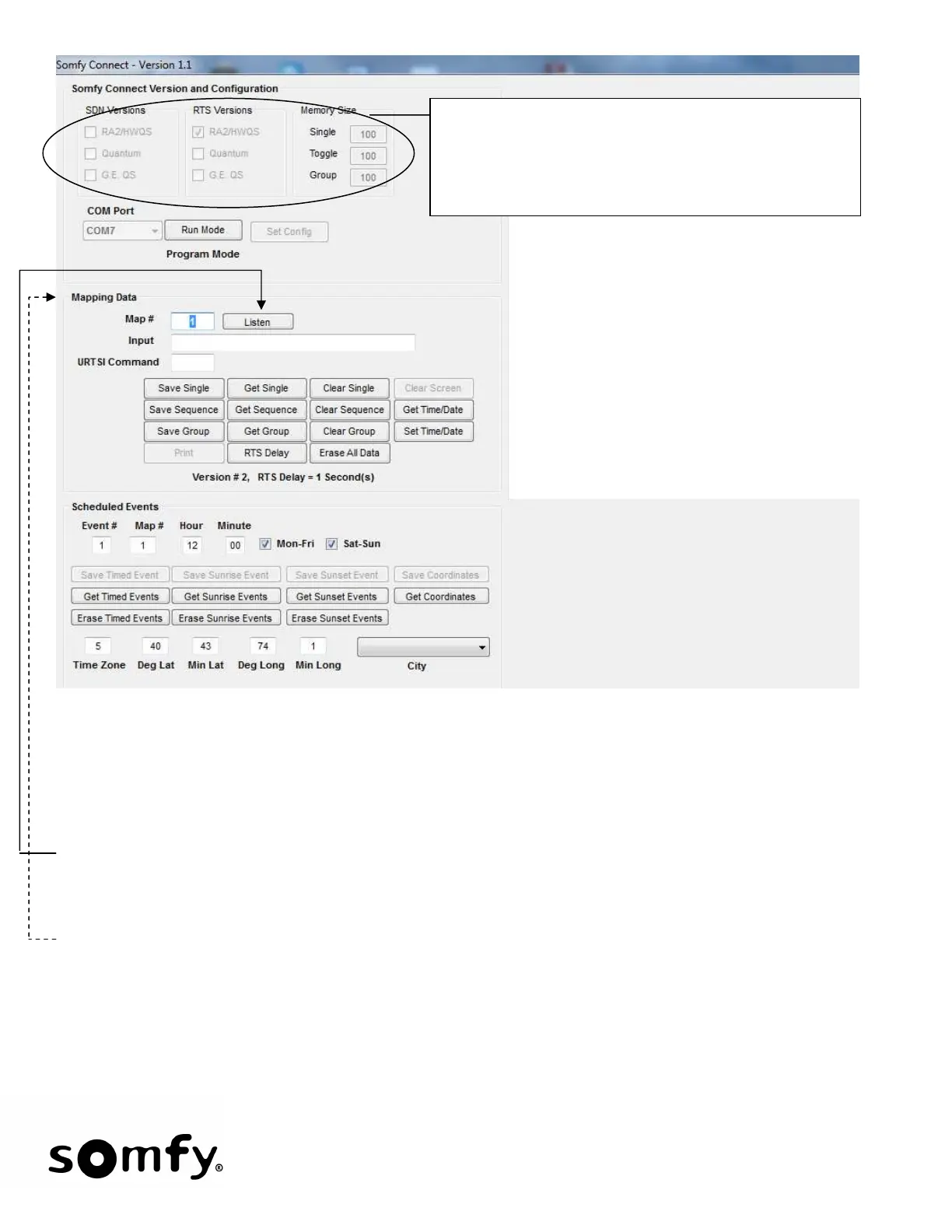 • To start programming the Somfy Connect, the command strings of the Lutron devices must be known. Once