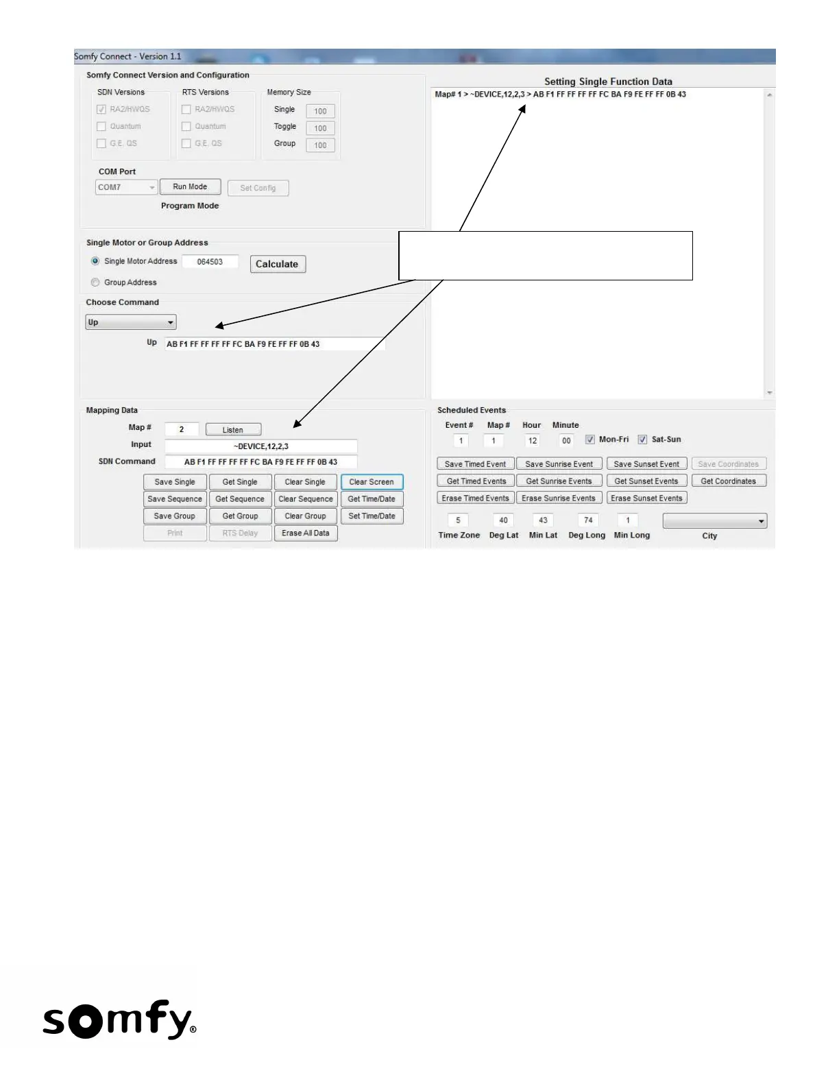 SOMFY Connect - Programming Somfy Connect for RA2 to SDN; Saving SDN Single Function Example; Testing Programmed SDN Commands