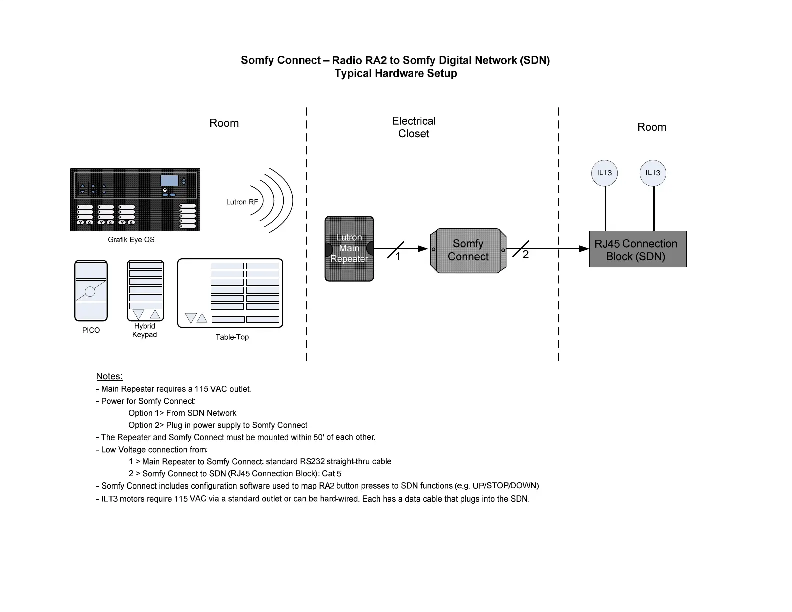 SOMFY Connect - System Integration Setup Examples; Radio RA2 to RTS Setup Example; Radio RA2 to SDN Setup Example