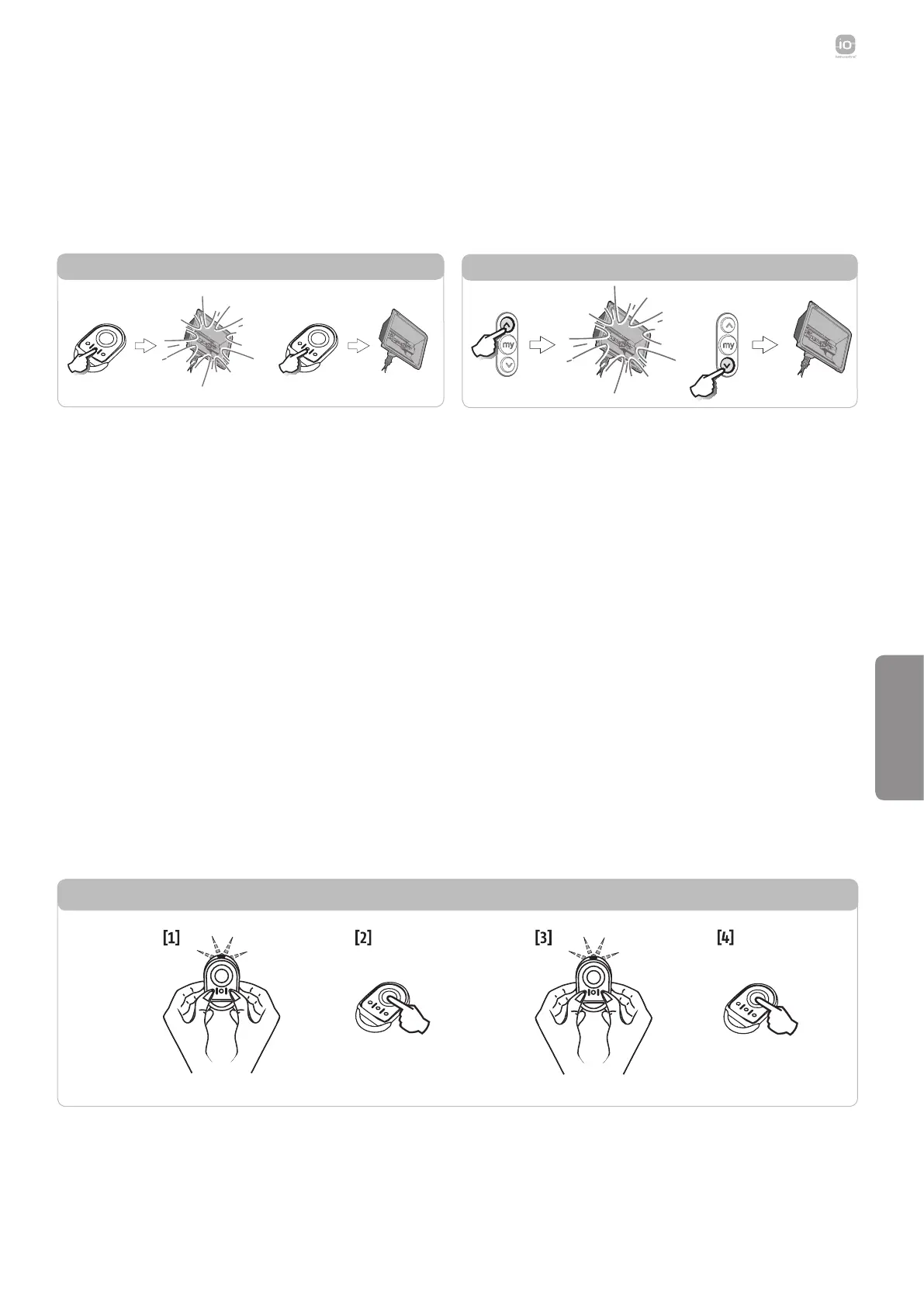 Czynność ta umożliwia skopiowanie funkcji jednego przycisku zaprogramowanego pilota Keygo io (pilot „A” na przycisk nowego pilota Keygo io (pilot „B”).