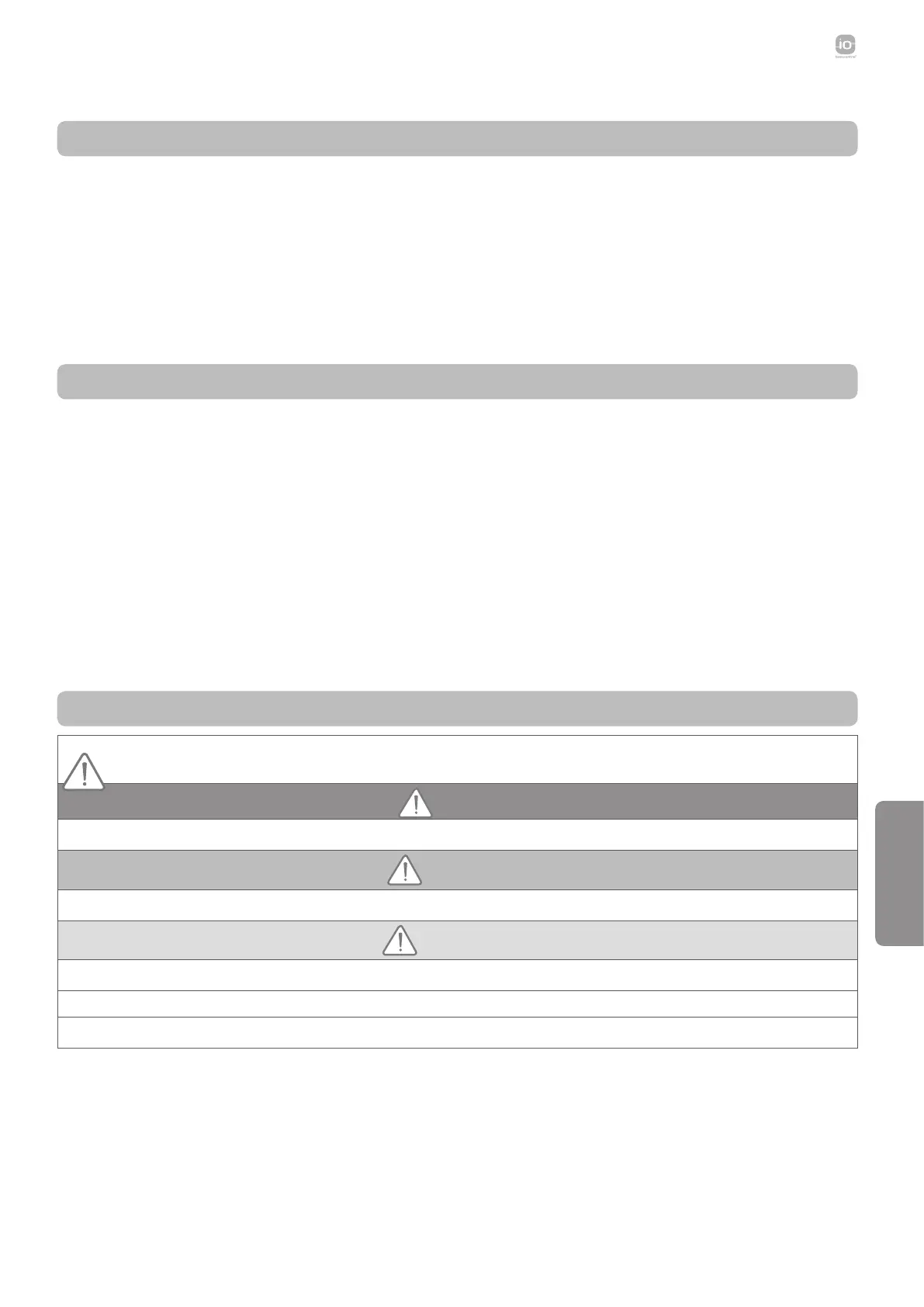 Questo simbolo segnala un pericolo i cui diversi gradi sono descritti di seguito.