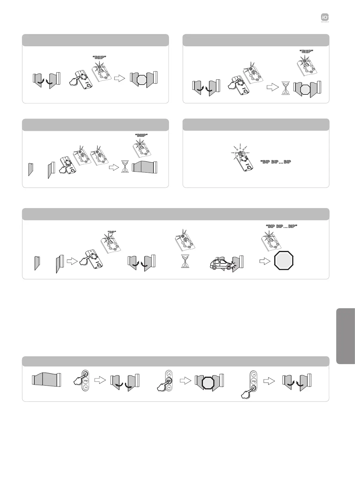 In base alle periferiche installate ed alle opzioni di funzionamento programmate dal vostro installatore, la motorizzazione può funzionare nei seguenti modi: