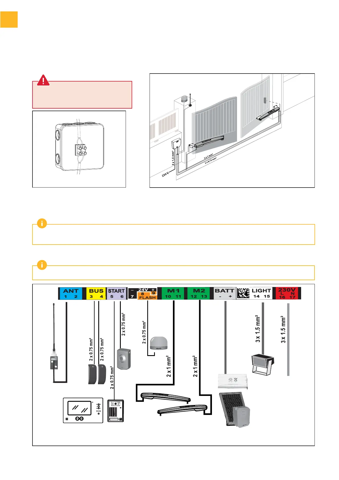 • Verbindung zwischen den beiden Motoren: Kabel 2 x 1 mm²; einen IP55-Schaltkasten zum Schutz der Verbindung zwischen dem