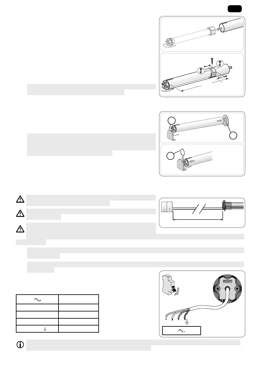 - Pieslēdziet motorizācijas aprīkojumu, ņemot vērā tabulas