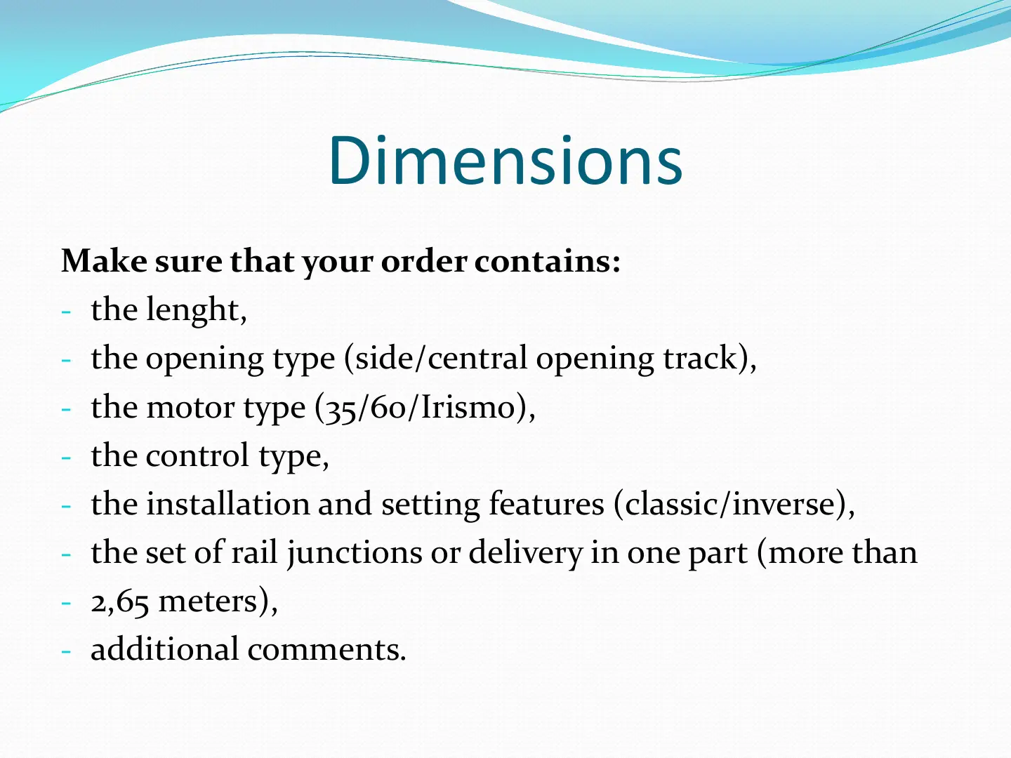 - the motor type (35/60/Irismo),