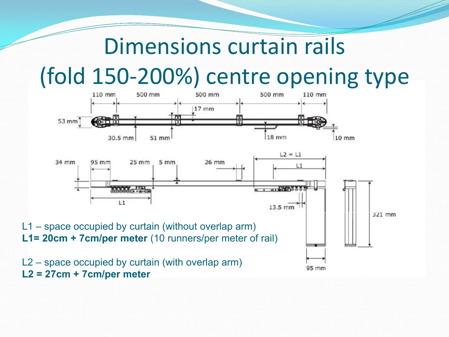 SOMFY mMotion Plus - Dimensions Curtain Rails (Fold 150-200%) Centre Opening Type