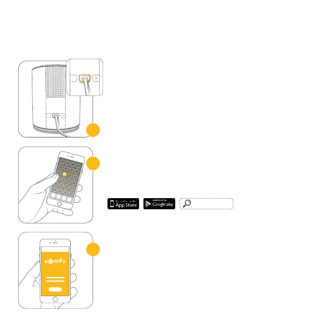 EN Plug the Somfy One+ into a power outlet making sure that the cord is