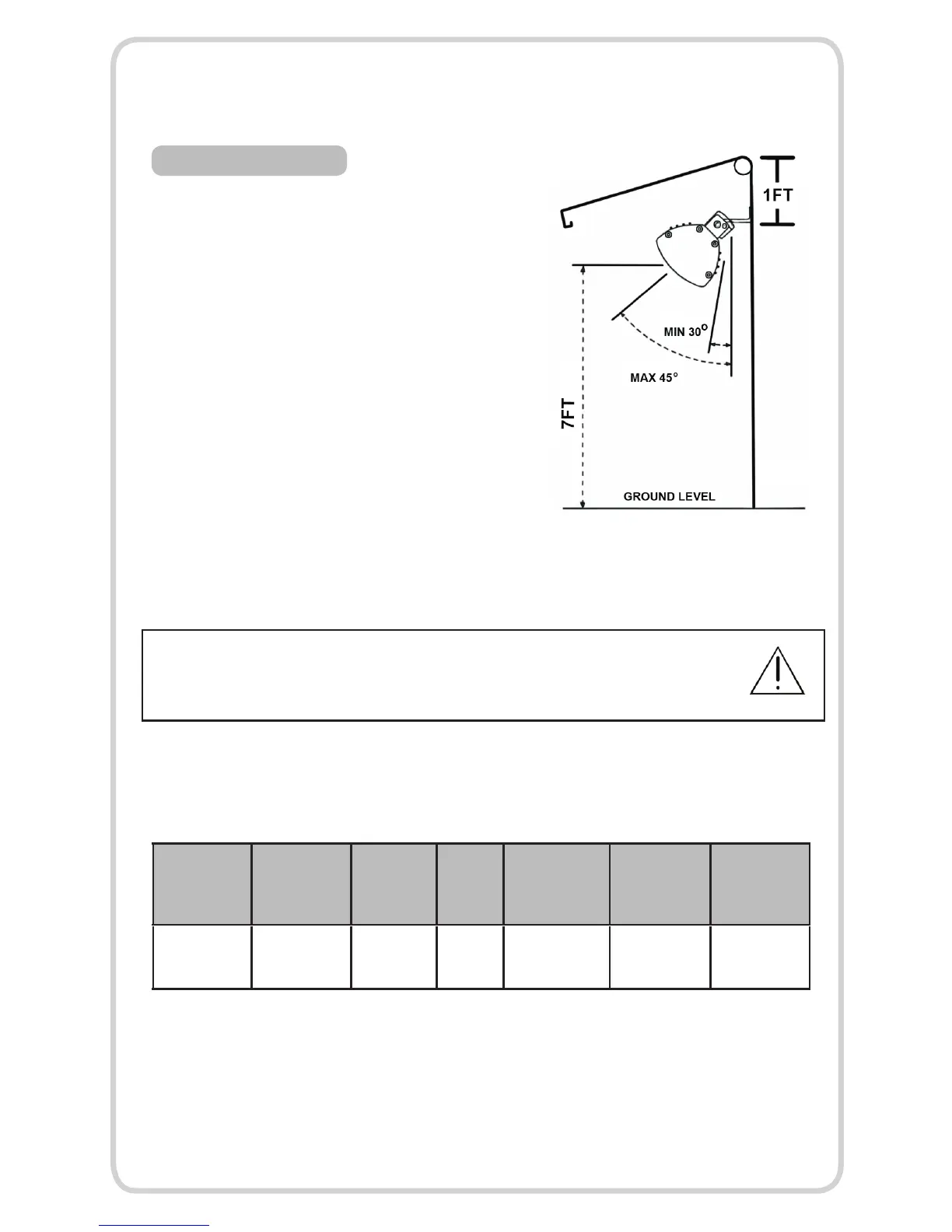 infammable surfaces and objects when mounting refer to table below
