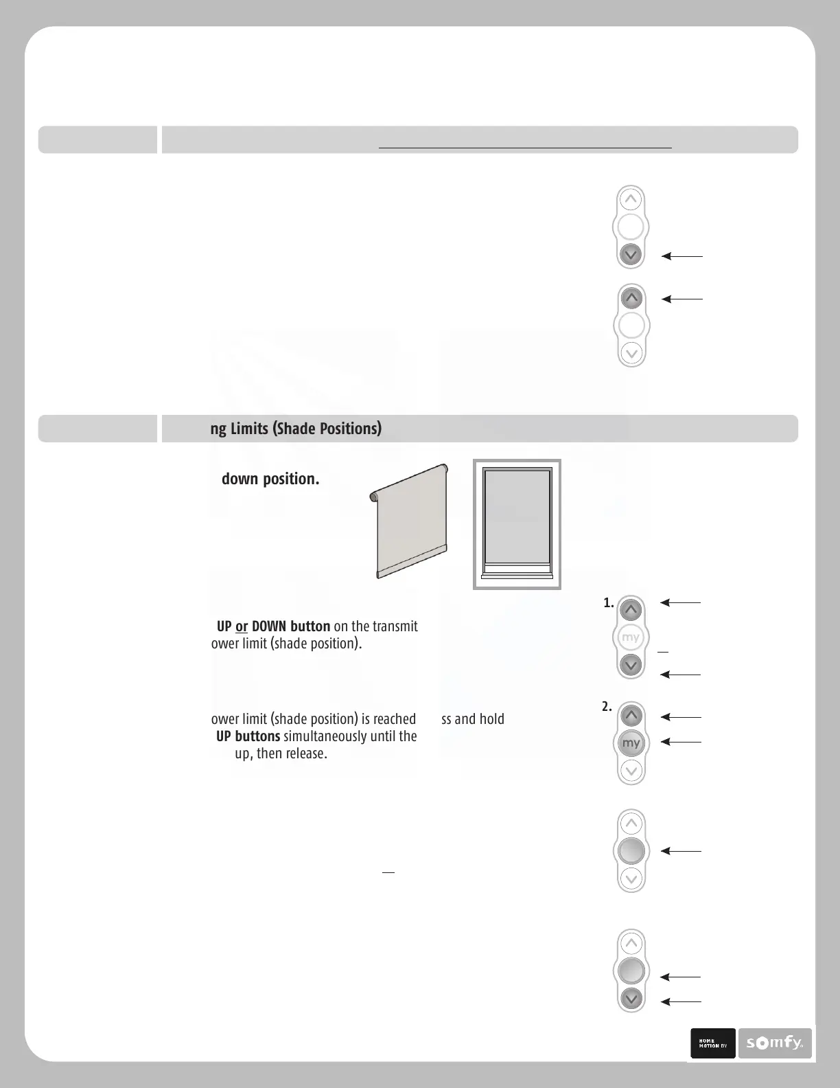 2 ) Once the desired lower limit (shade position) is reached, press and hold