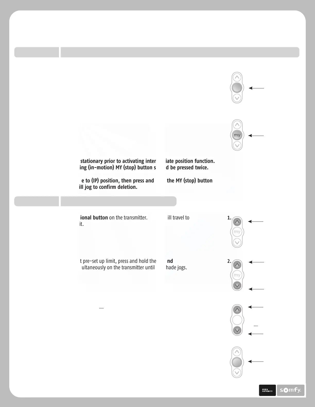 MY (stop) on the transmitter until the shade jogs. Intermediate