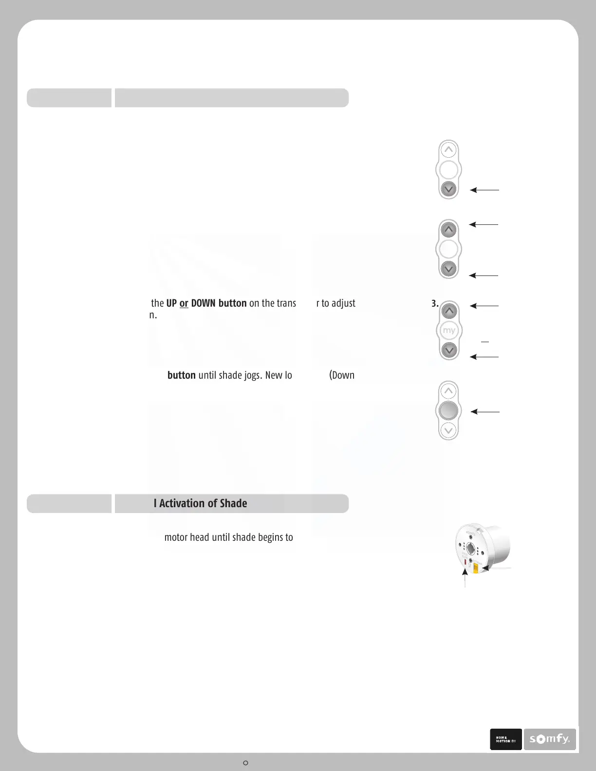 DOWN s simultaneously on the transmitter until the shade jogs.button