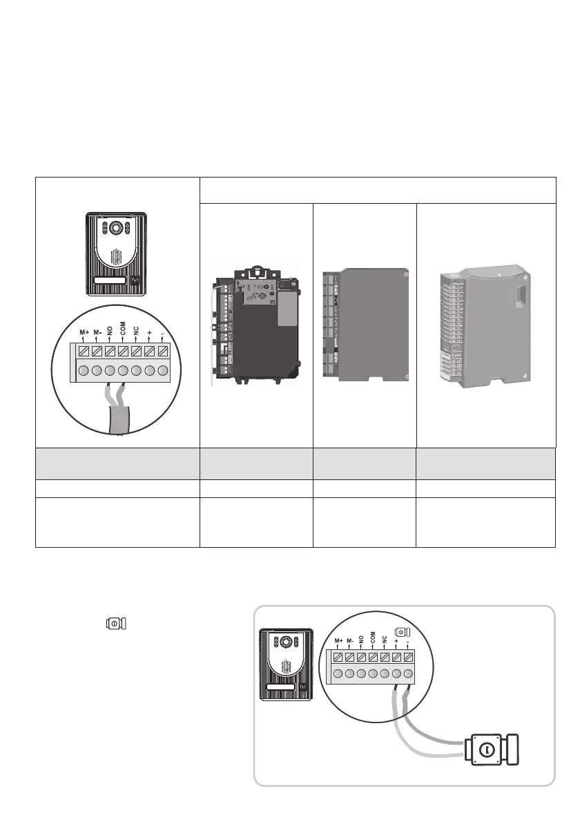 Σε μηχανισμούς που διαθέτουν ηλεκτρονικά που φαίνονται στη δεξιά πλευρά, συνδέστε την έξοδο ξηρής επαφής (COM και NO) της μπουτονιέρας στους