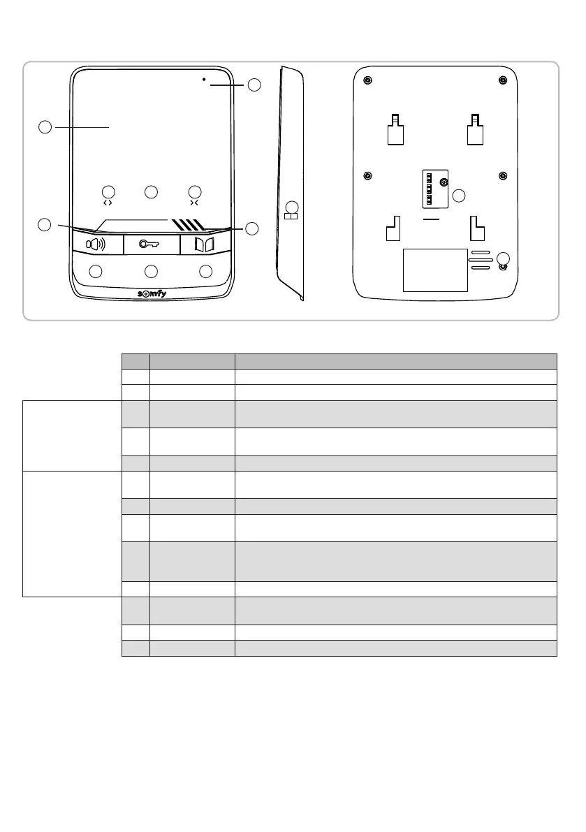 5 Öffner-Taste Tor Steuert das motorisierte Tor. Gestattet die Navigation durch die Einstellungen.