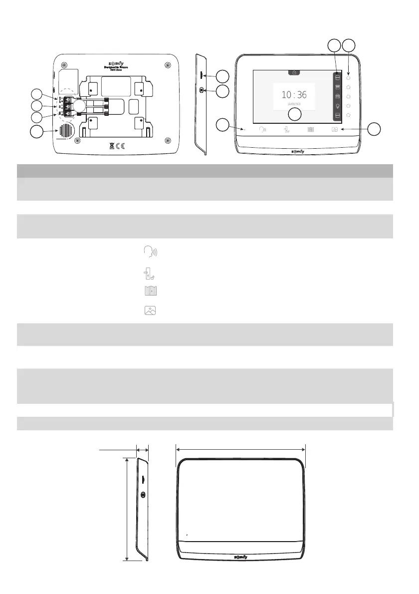 1 Screen Allows the user to see the visitor, consult the photos of missed visits, view the settings,
