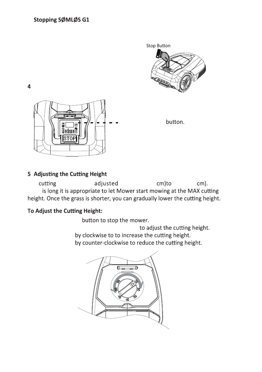 SOMLOS G1 - Basic Operation; Stopping and Switching Off Mower; Adjusting Cutting Height