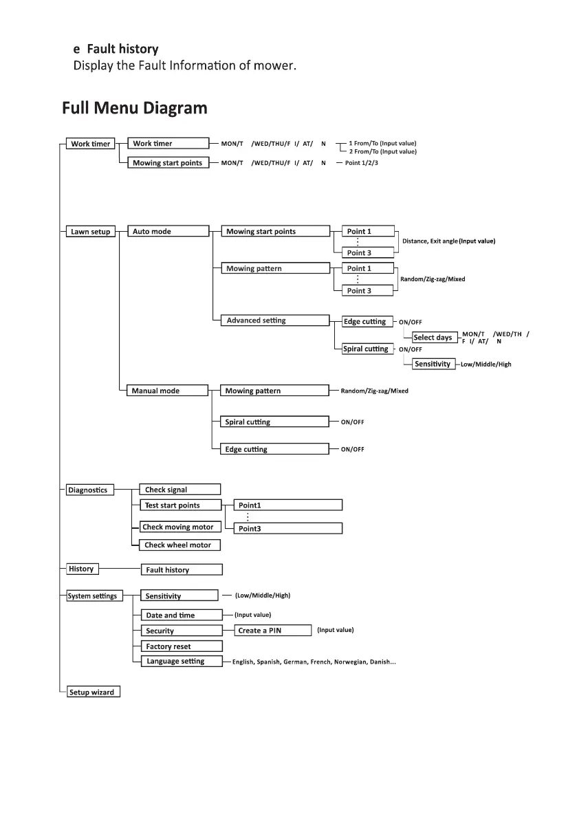 SOMLOS G1 - Menu Navigation and Faults; Full Menu Diagram; Fault History Information