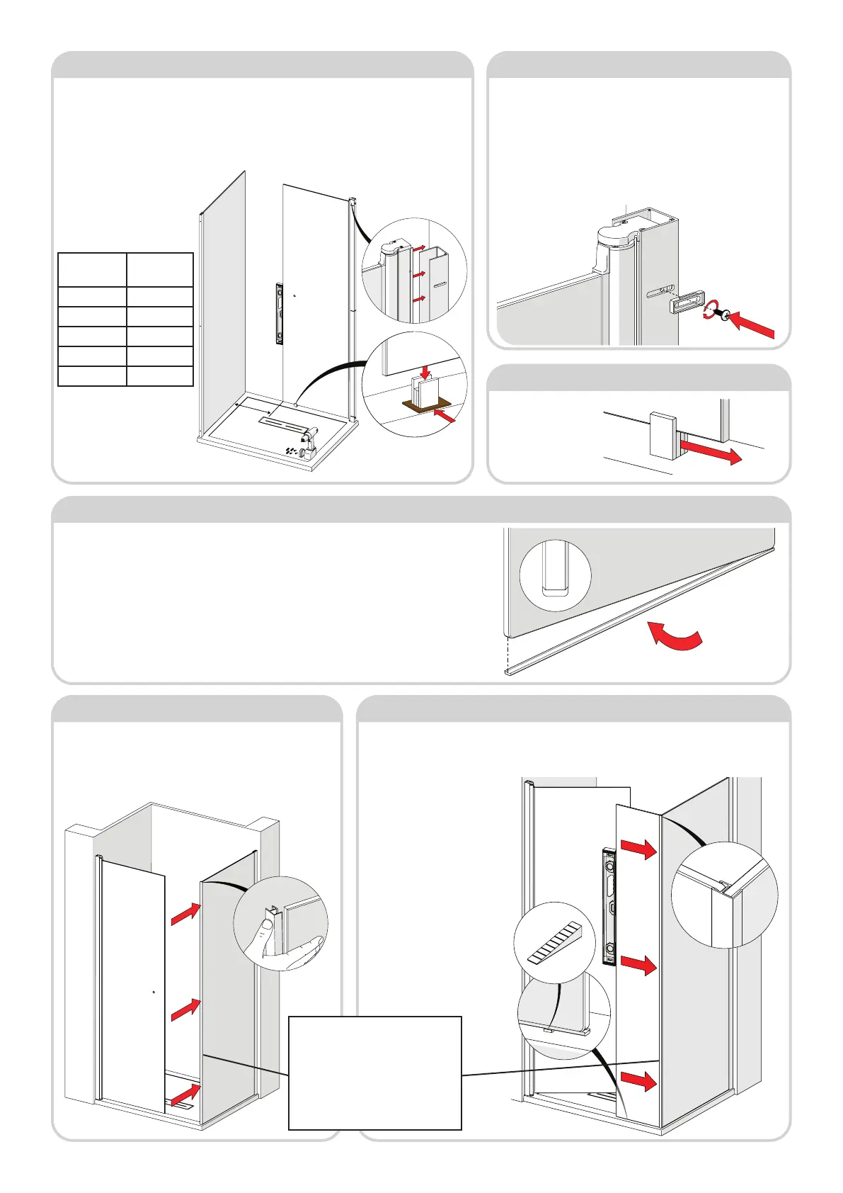 1. Carefully t Door Glass Assembly into wallpost. Slot the glass into the ‘BLOCK’ already