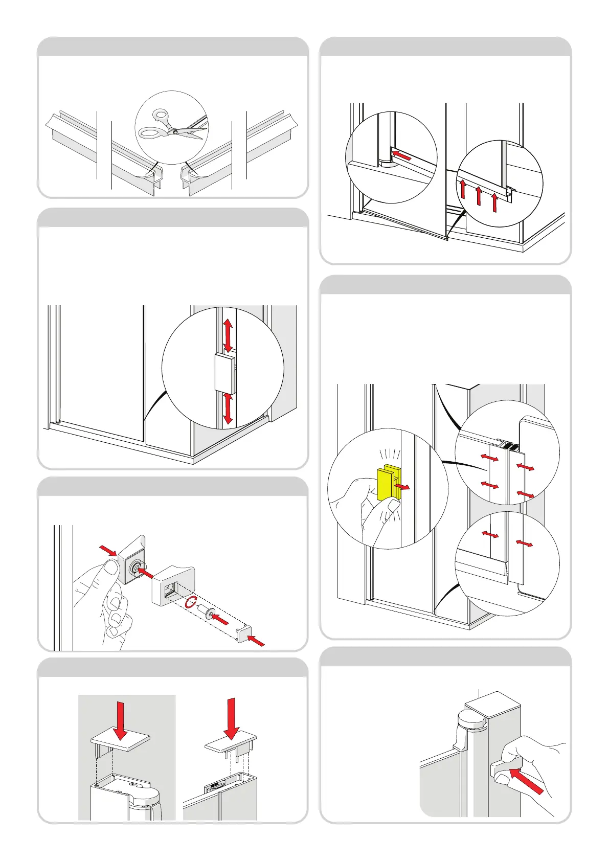 two glass panels. If the gap needs to be adjusted, simply adjust the door postion