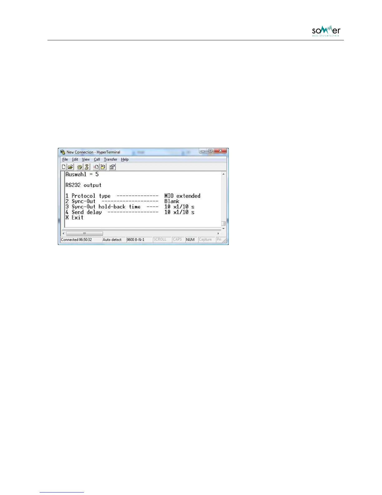 Fig. 3: Submenu: RS232 output