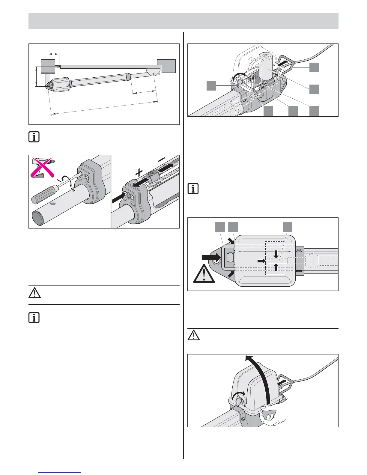 • Extending travel length: Turn “close” setscrew in (+) direction.