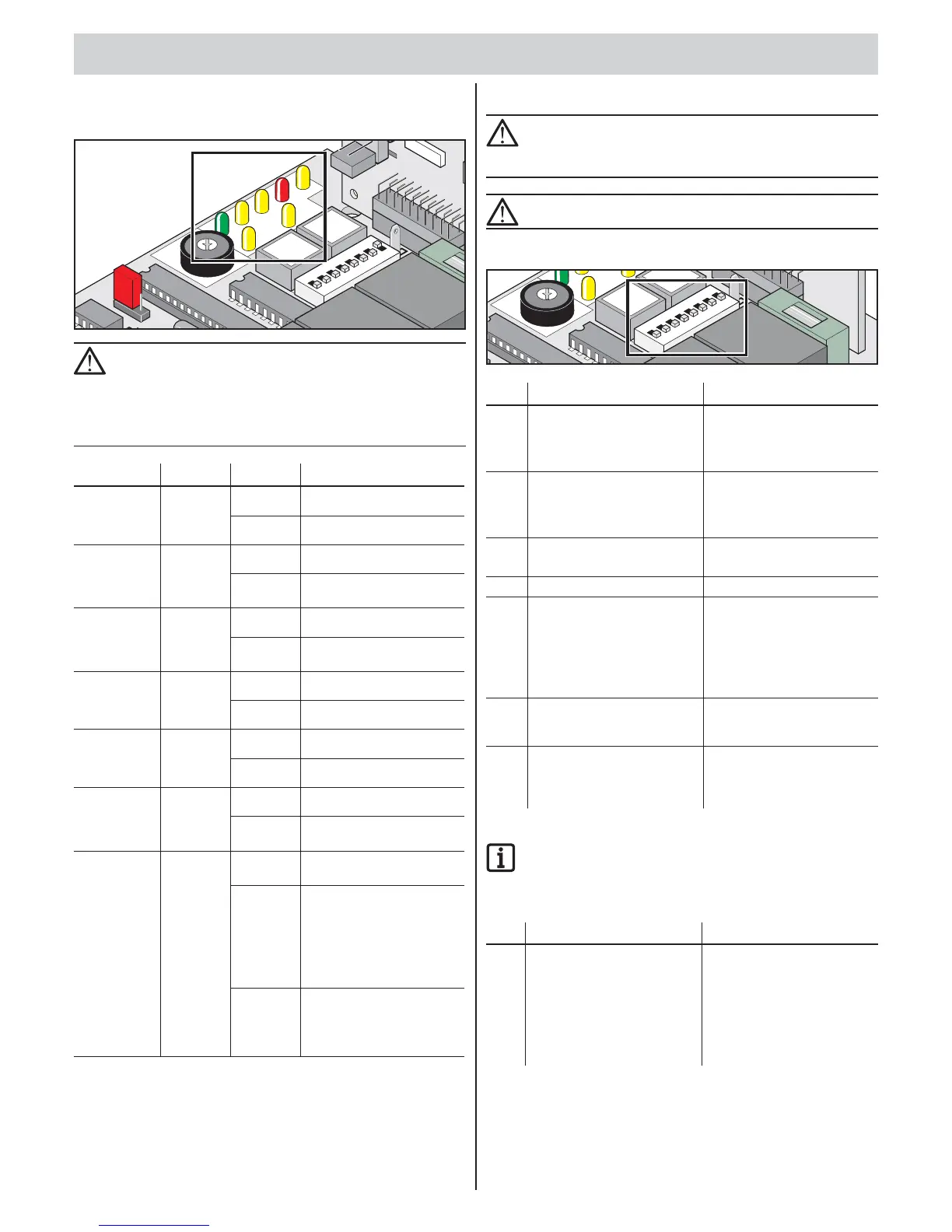 • Warning light on