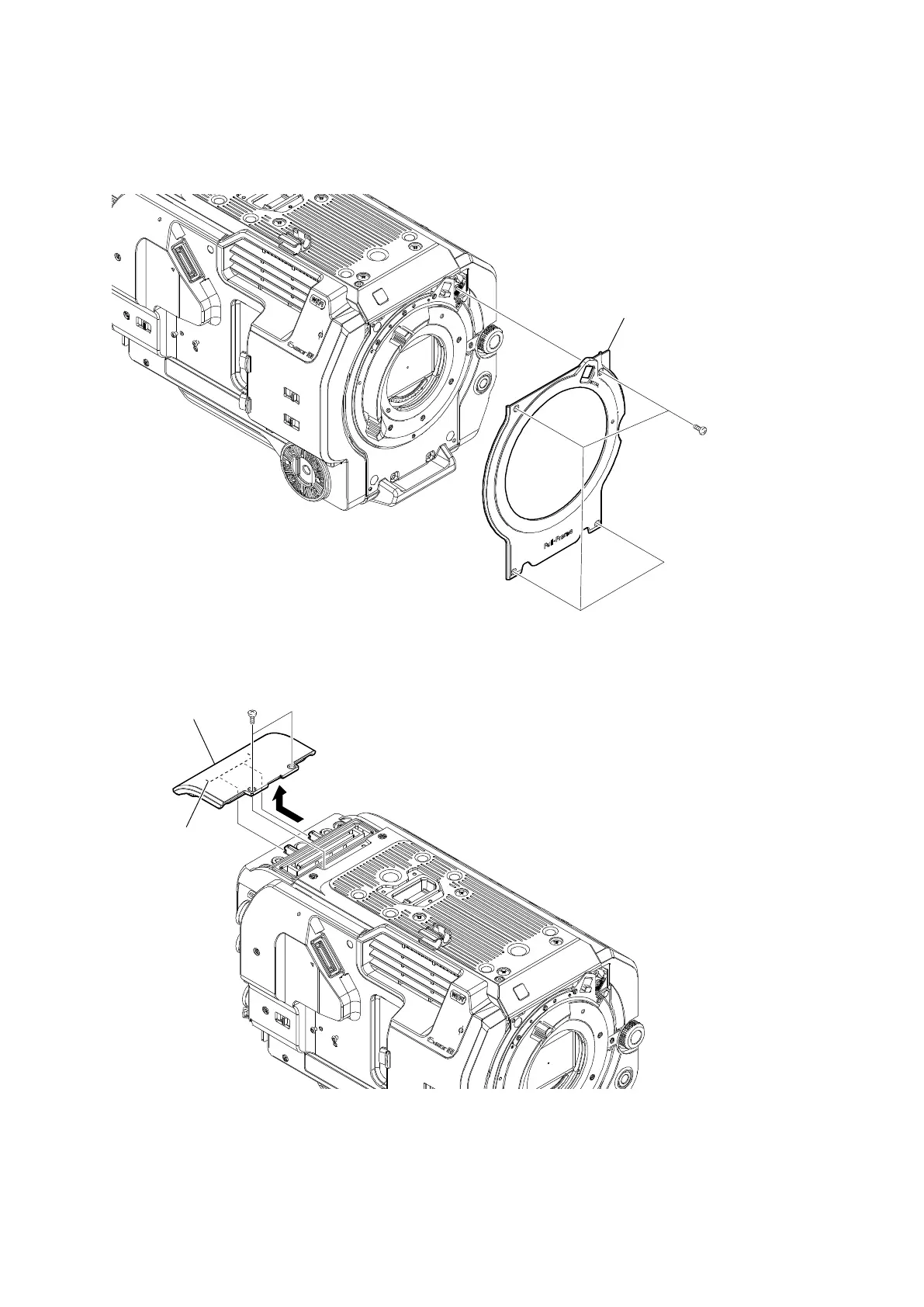 2. Remove the two precision screws, and then remove the BOB lid assembly in the direction of the arrow.