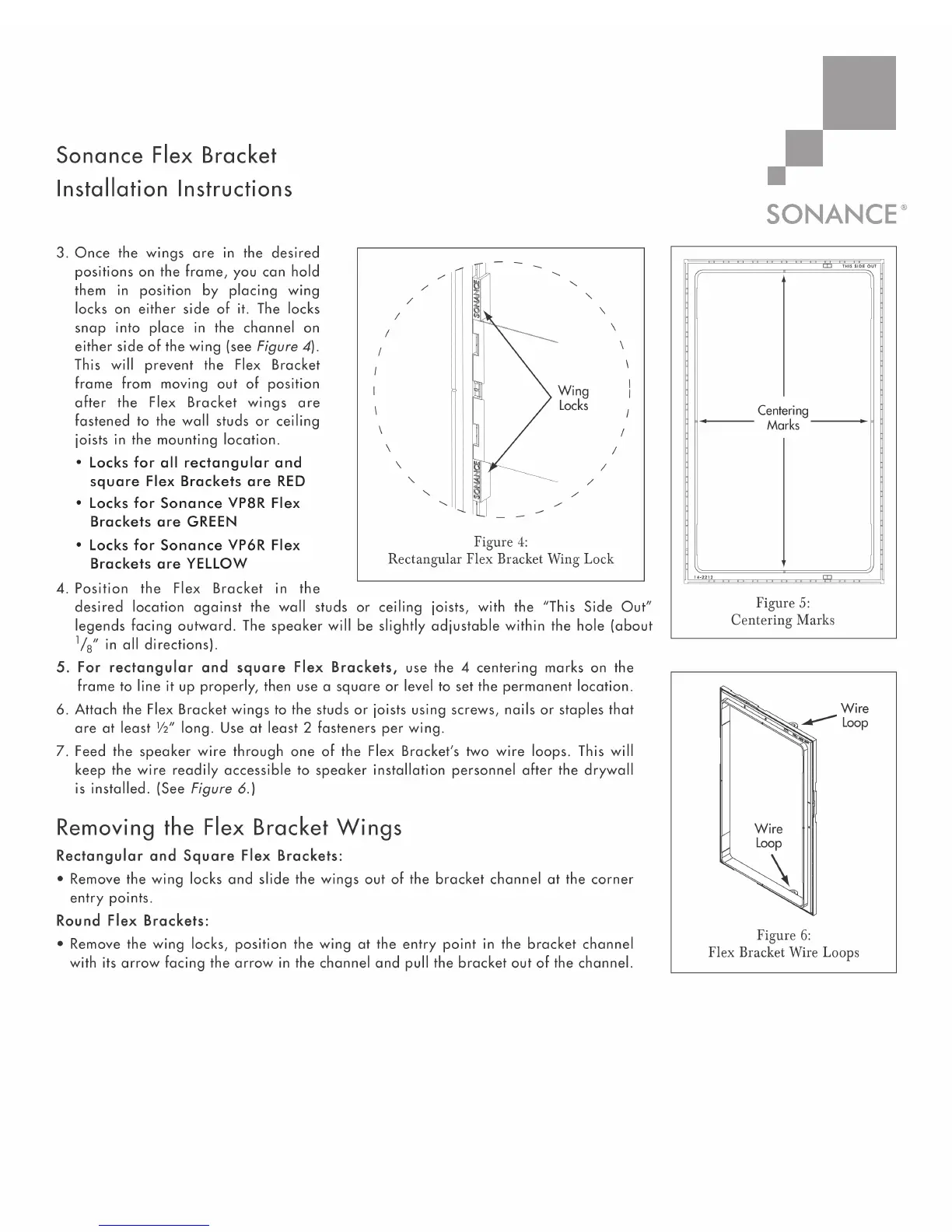 Sonance Flex Bracket - Securing Wings with Locks; Positioning and Attaching Bracket; Wire Management; Removing Bracket Wings