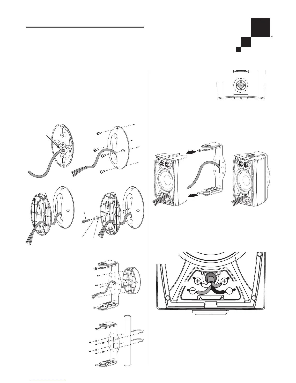• Pull enough wire through the front of the speaker to allow connec-