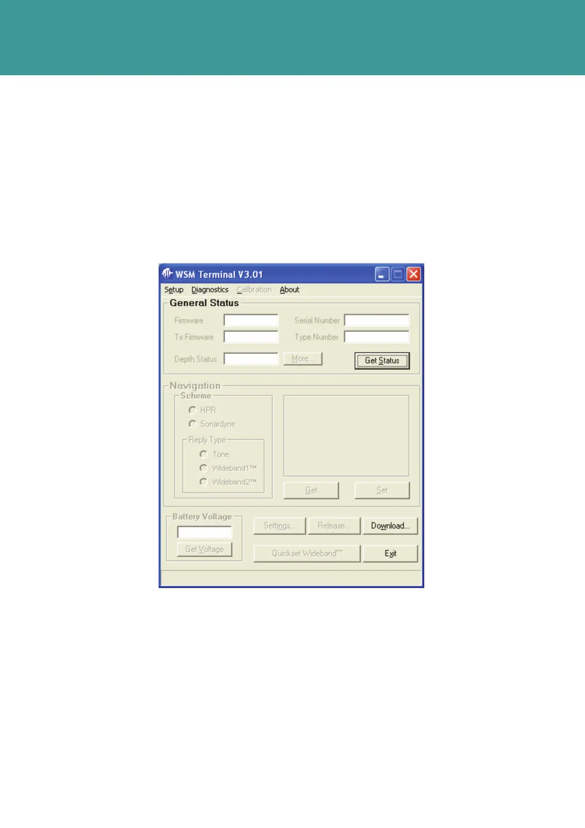 from the Start button. Follow: All Programs > Sonardyne > WSM Terminal V3.01.05.