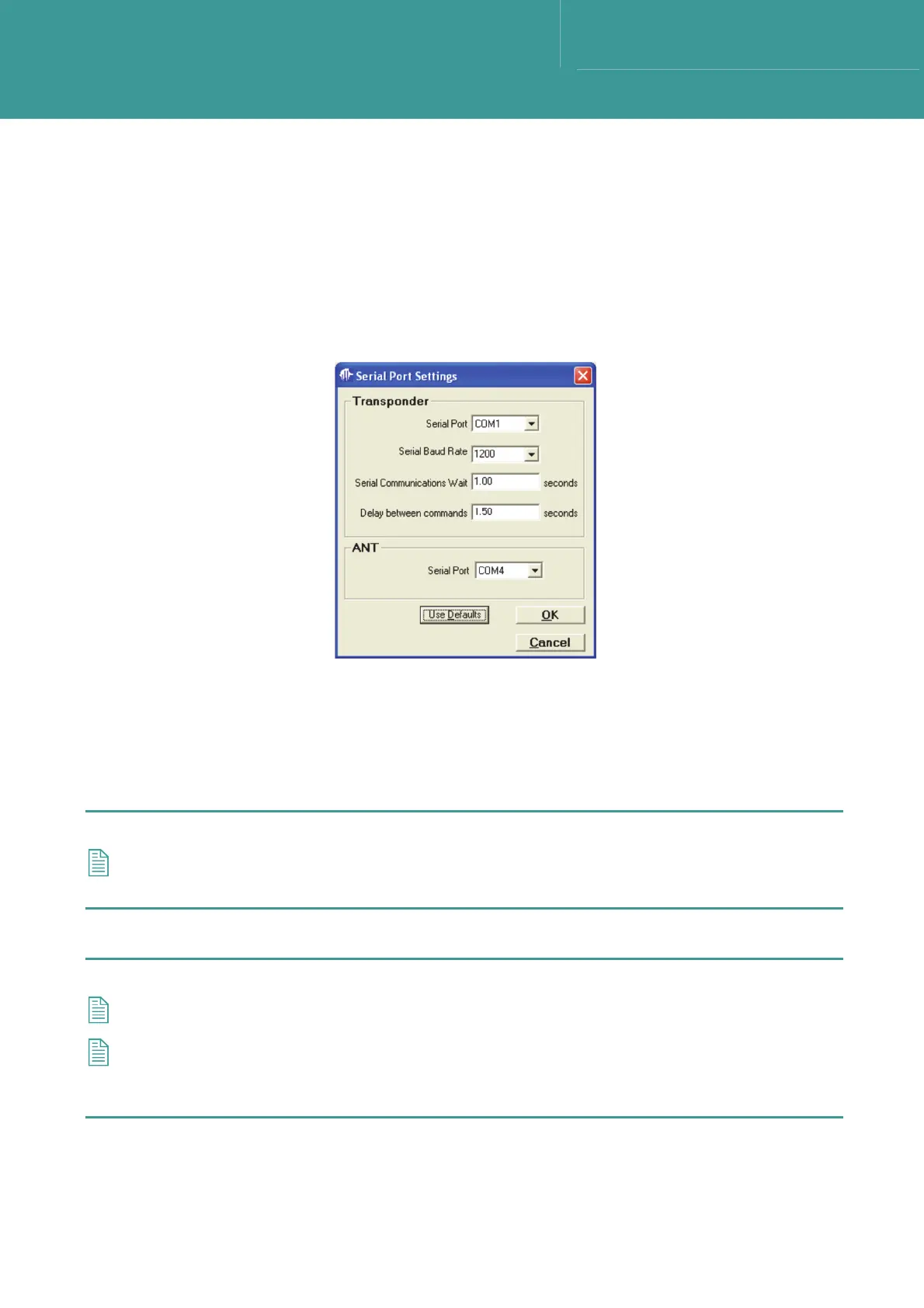 4. Set the Serial Communications Wait time to the maximum time allowed for the Transponder