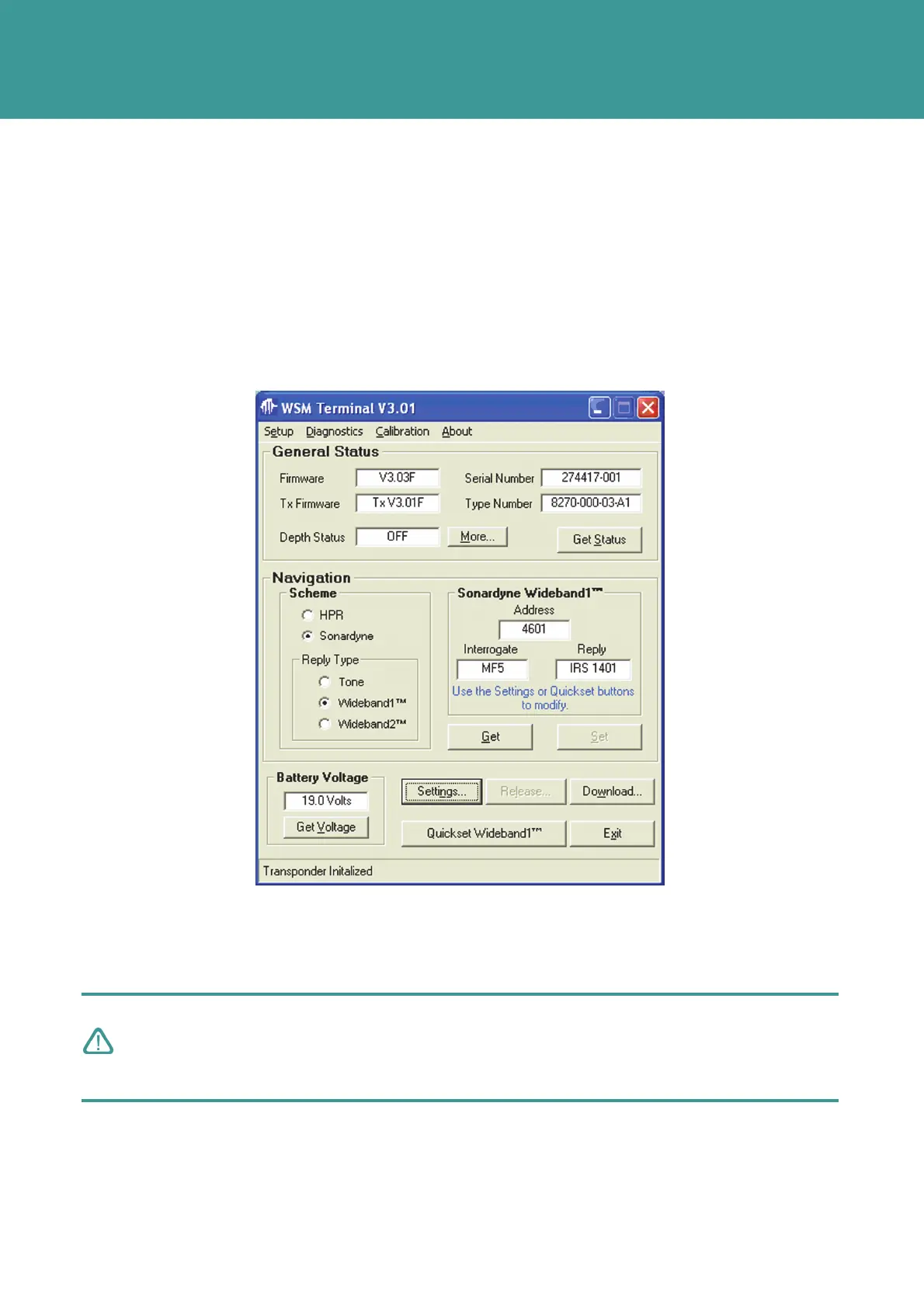 With the NAV Scheme set to Sonardyne, and the Reply Type set to Wideband 1®, the current