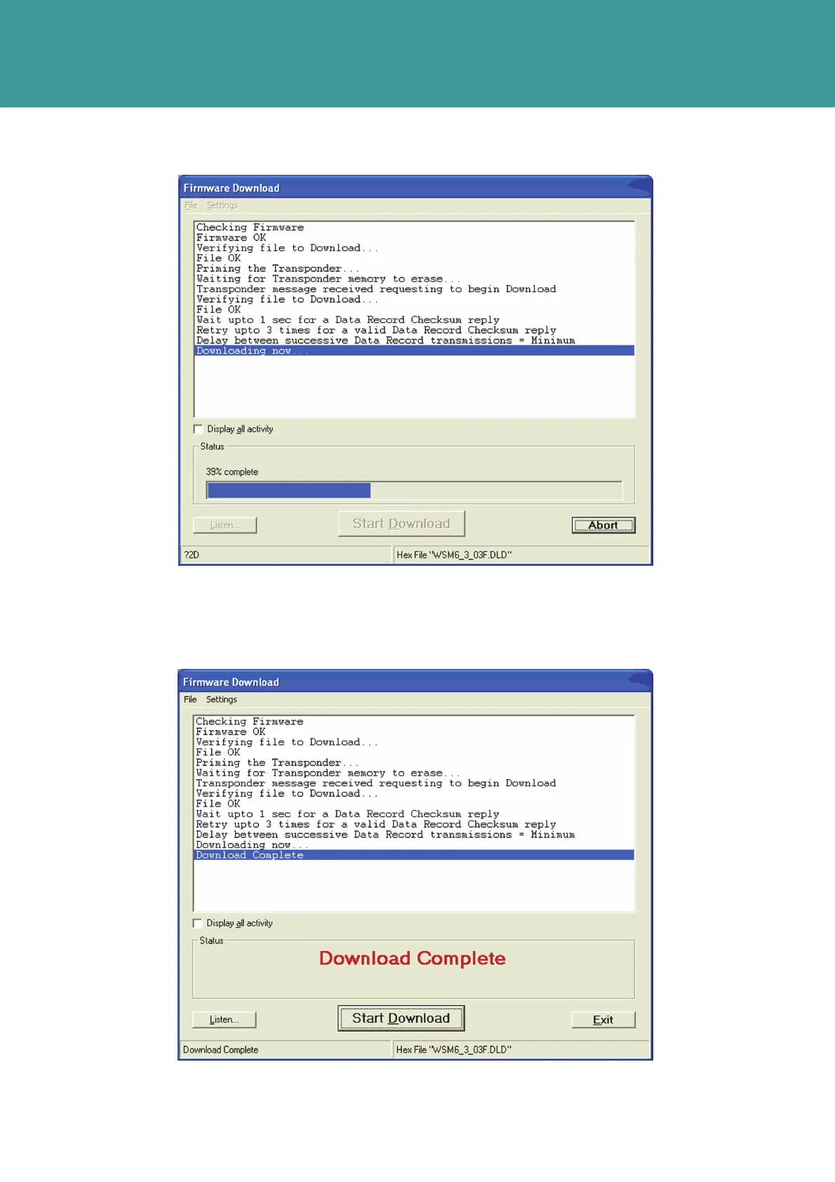 Sonardyne 8270 - Figure 7-22 - Firmware Downloading Status; Figure 7-23 - Firmware Download Complete
