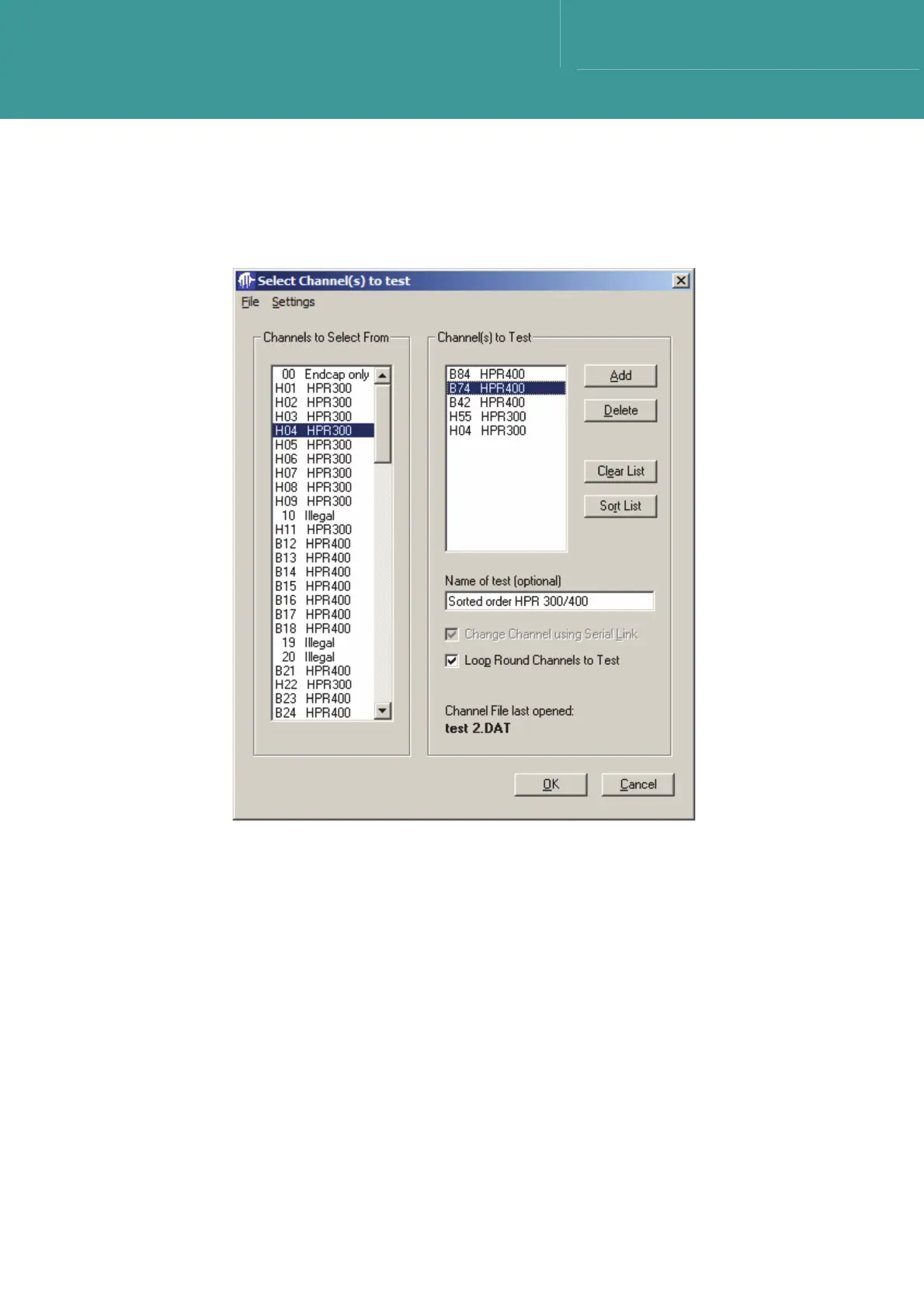 11. Select Sort List to sort the Channels to Test list into an ascending channel number order.