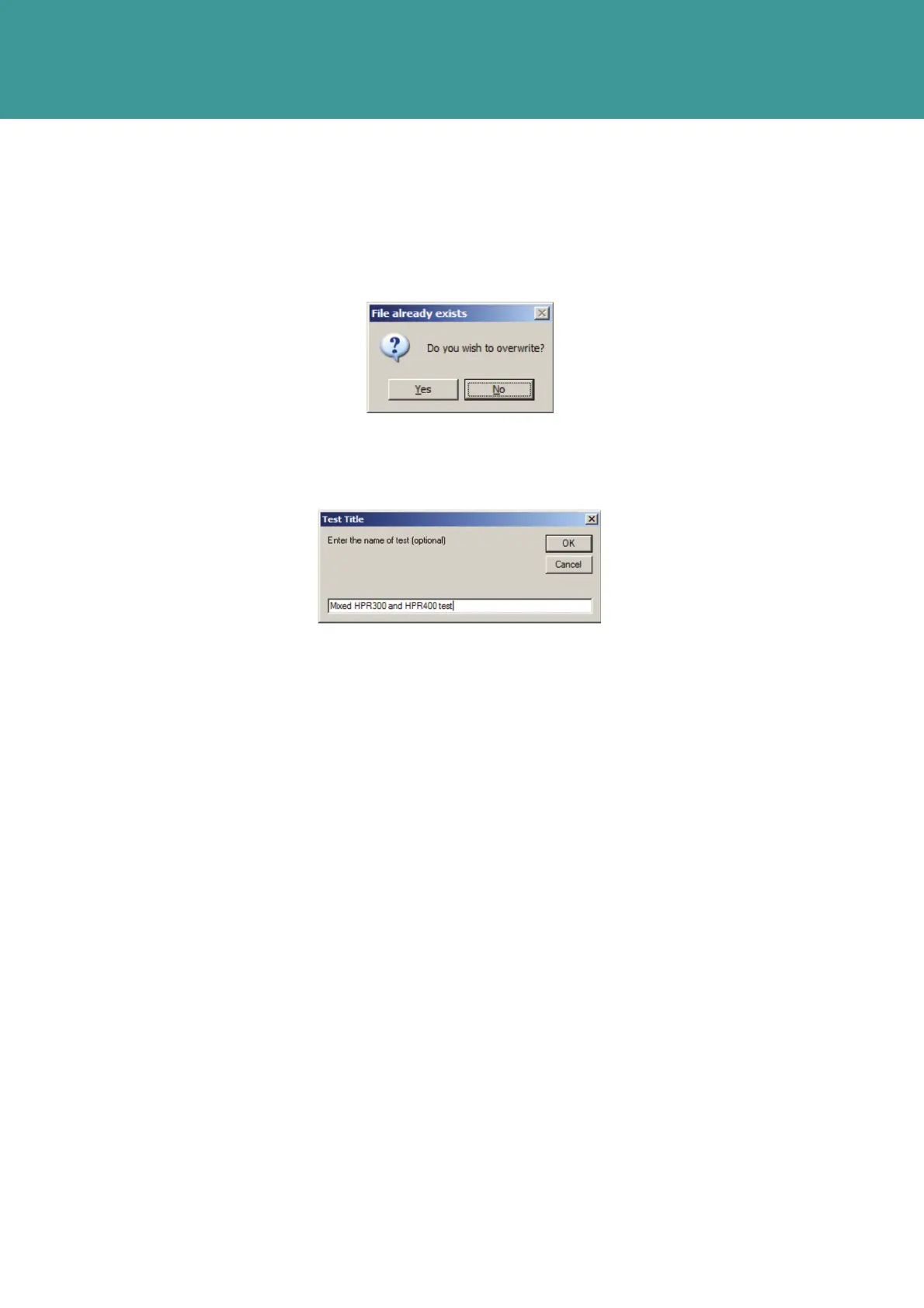 2. Choosing No aborts the save process; Yes prompts the Test Title dialog: