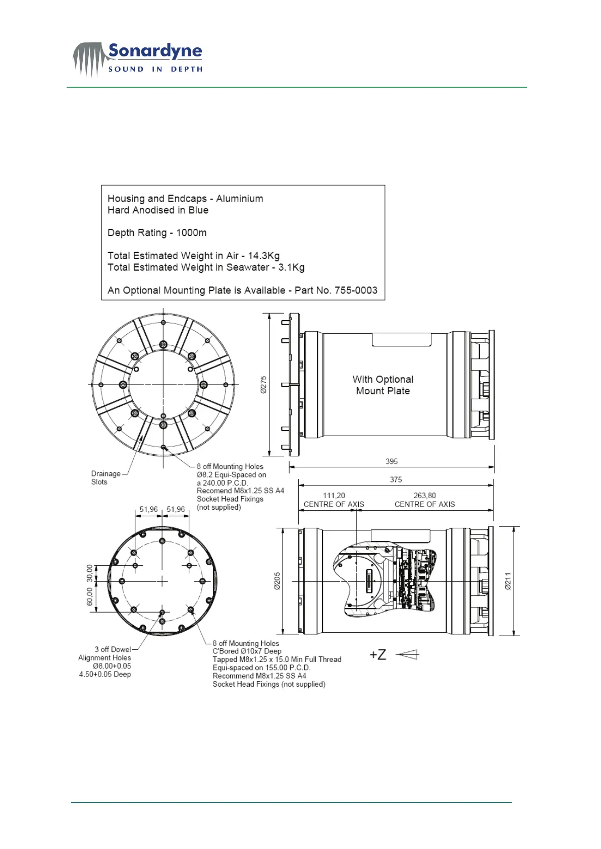 Sonardyne Lodestar - Figure 5 - Physical Specifications - 1000 M Subsea Lodestar
