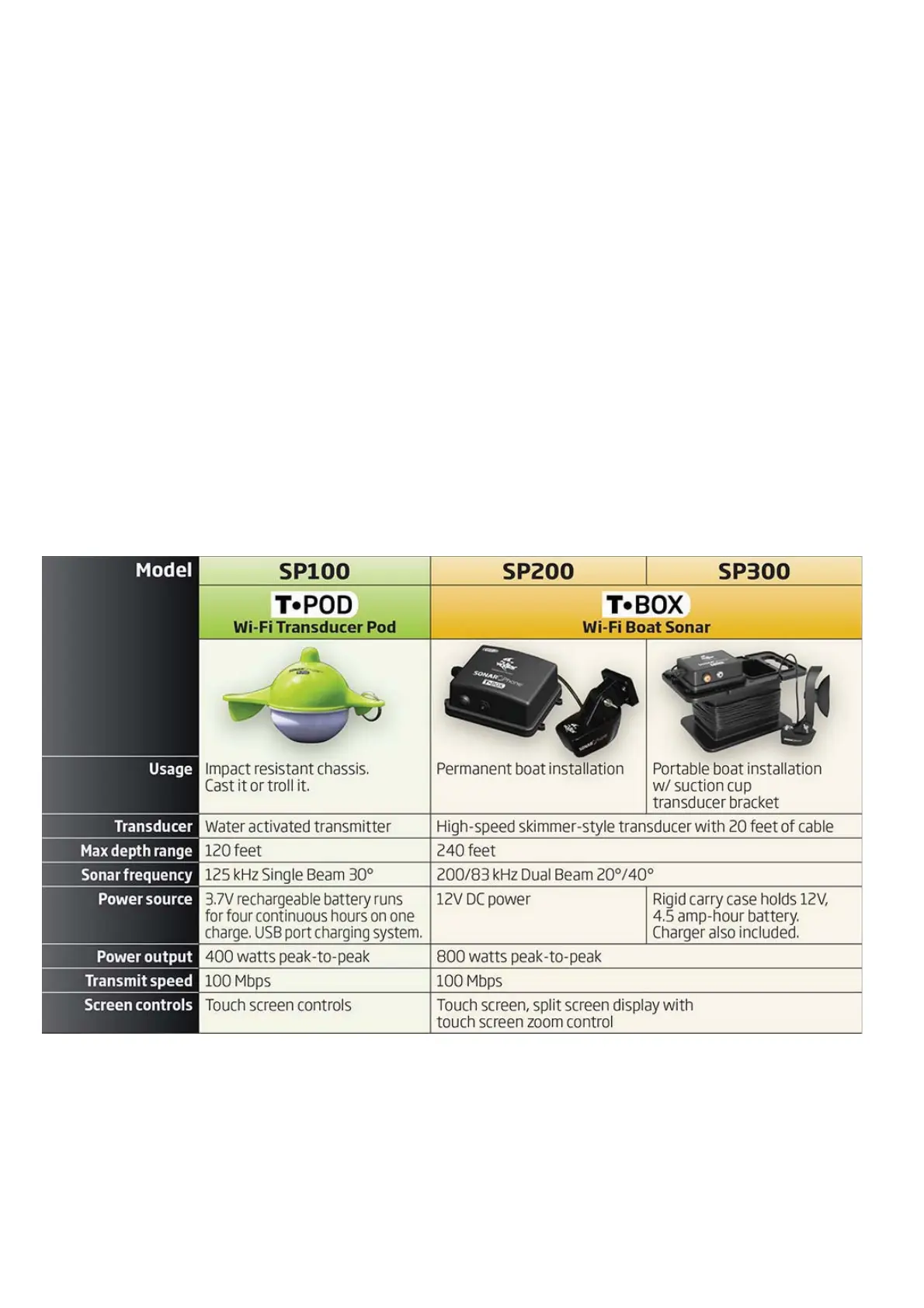 When in the water, the transducer (SP100 or SP200/SP300) sends a