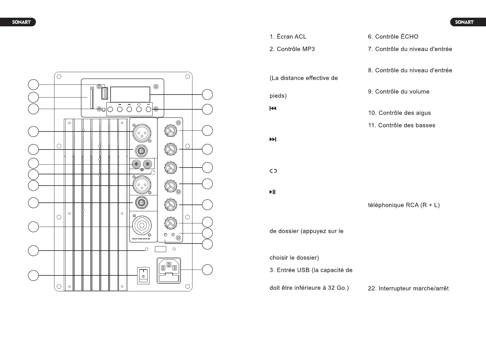 20. Sortie haut-parleur 8 Ohm
