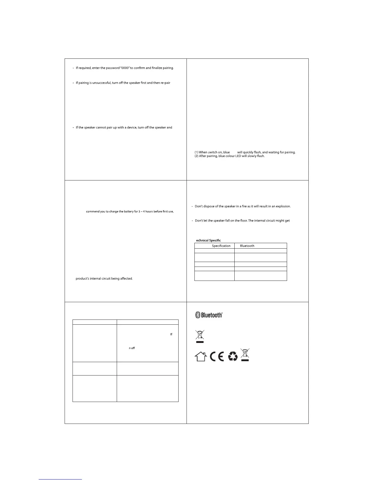 • Do not expose the speaker to liquid, moisture or humidity to avoid the
