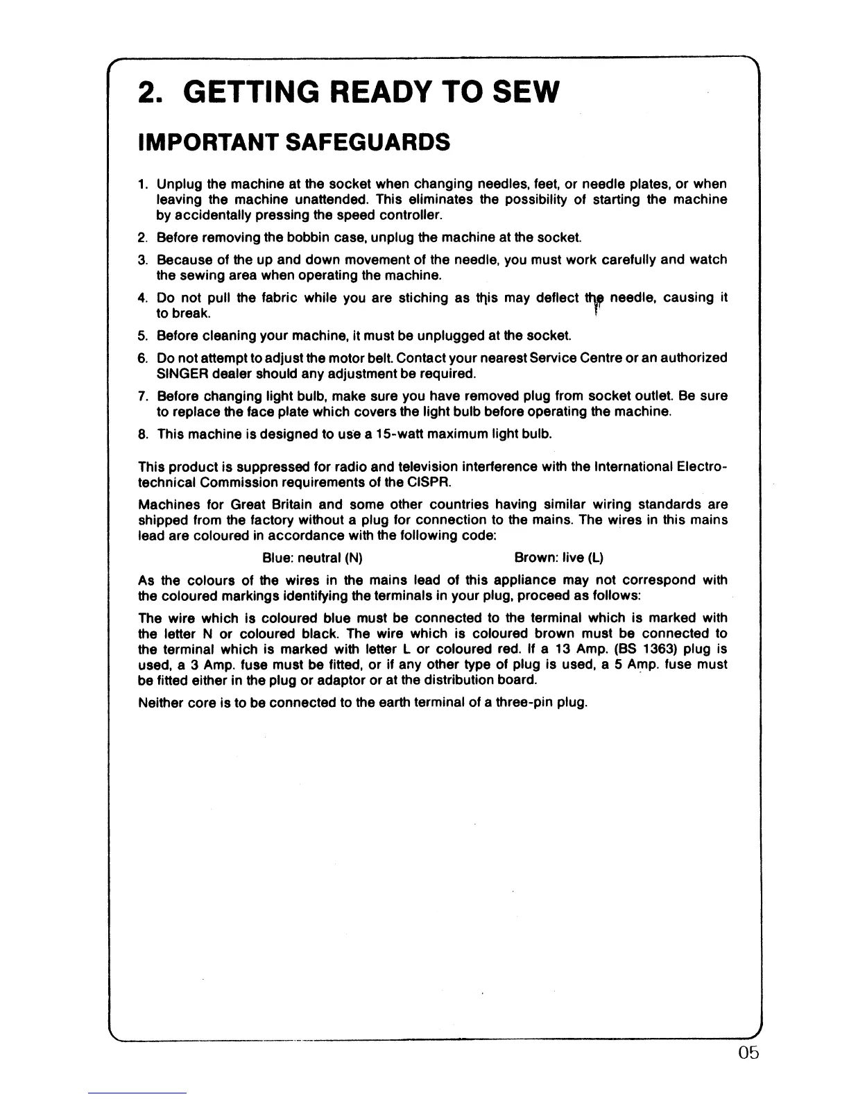 Sonata 6610 - Getting Ready to Sew; Important Safeguards