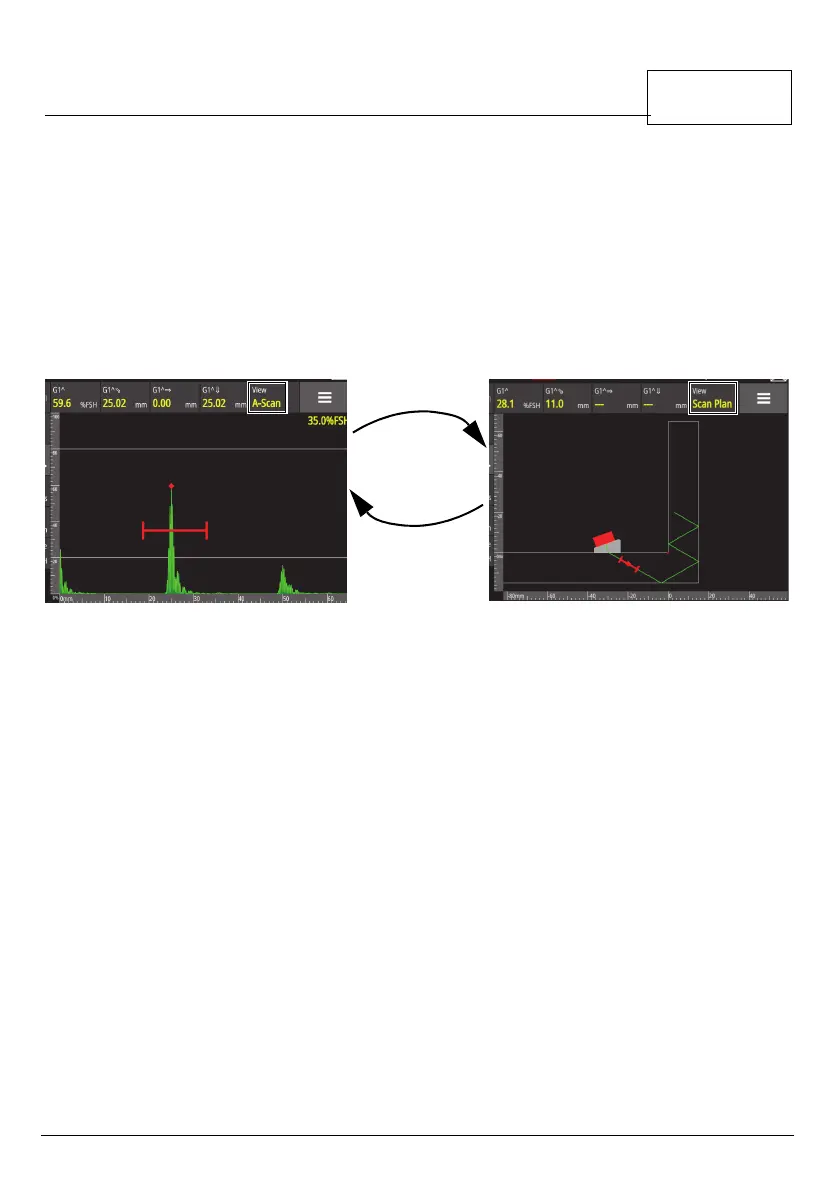 Only the View button allows you to switch from the A-Scan (a representation of