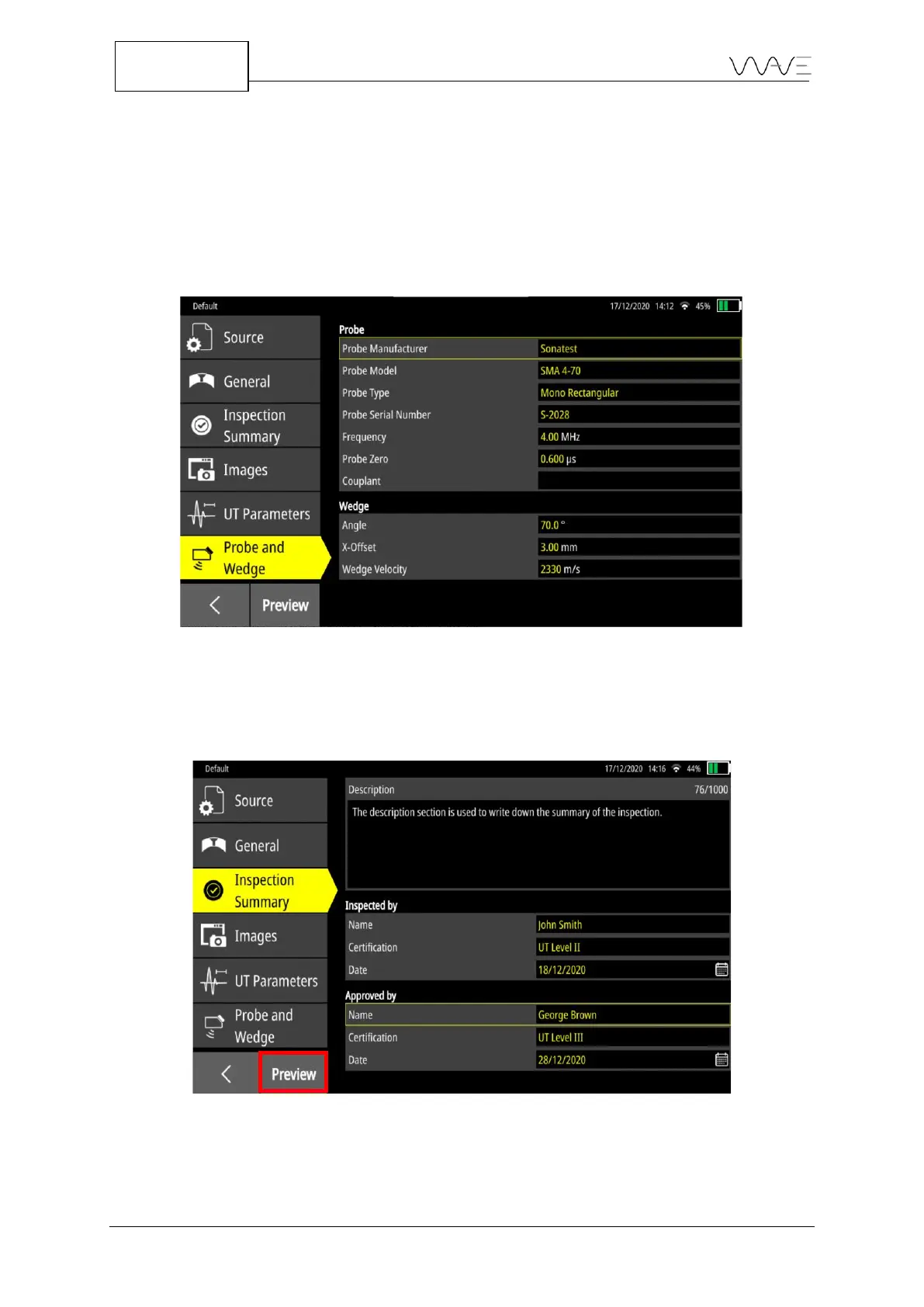 Figure 71 – Parameters related to the Probe and Wedge tab