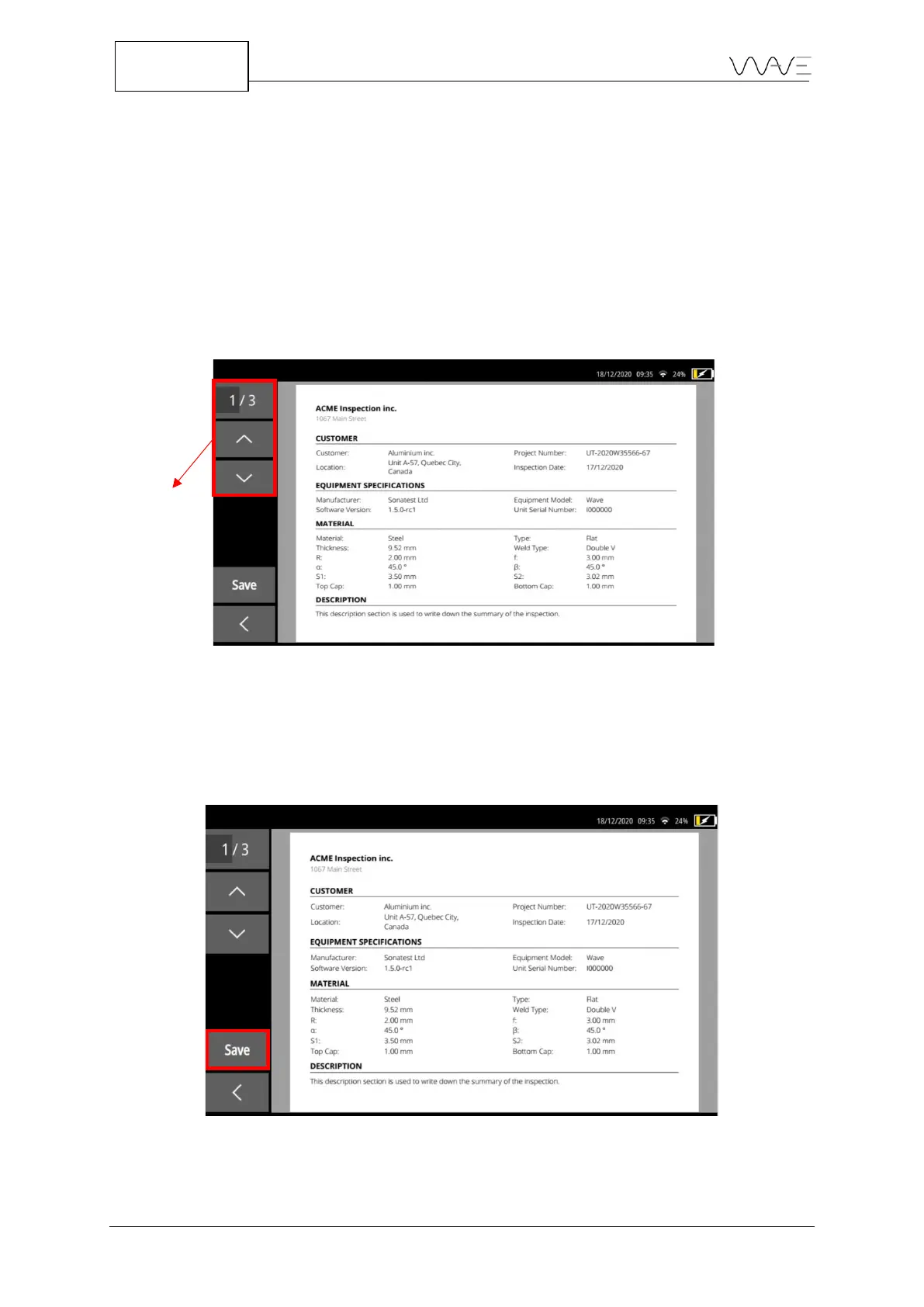 Navigating within the report is easy thanks to the touch screen. In order to zoom in or