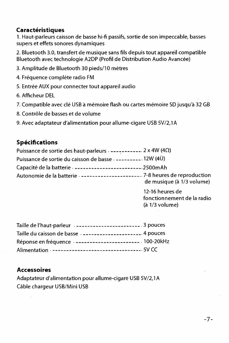 Bluetooth avec technologie A2DP (Profil de Distribution Audio Avancee)