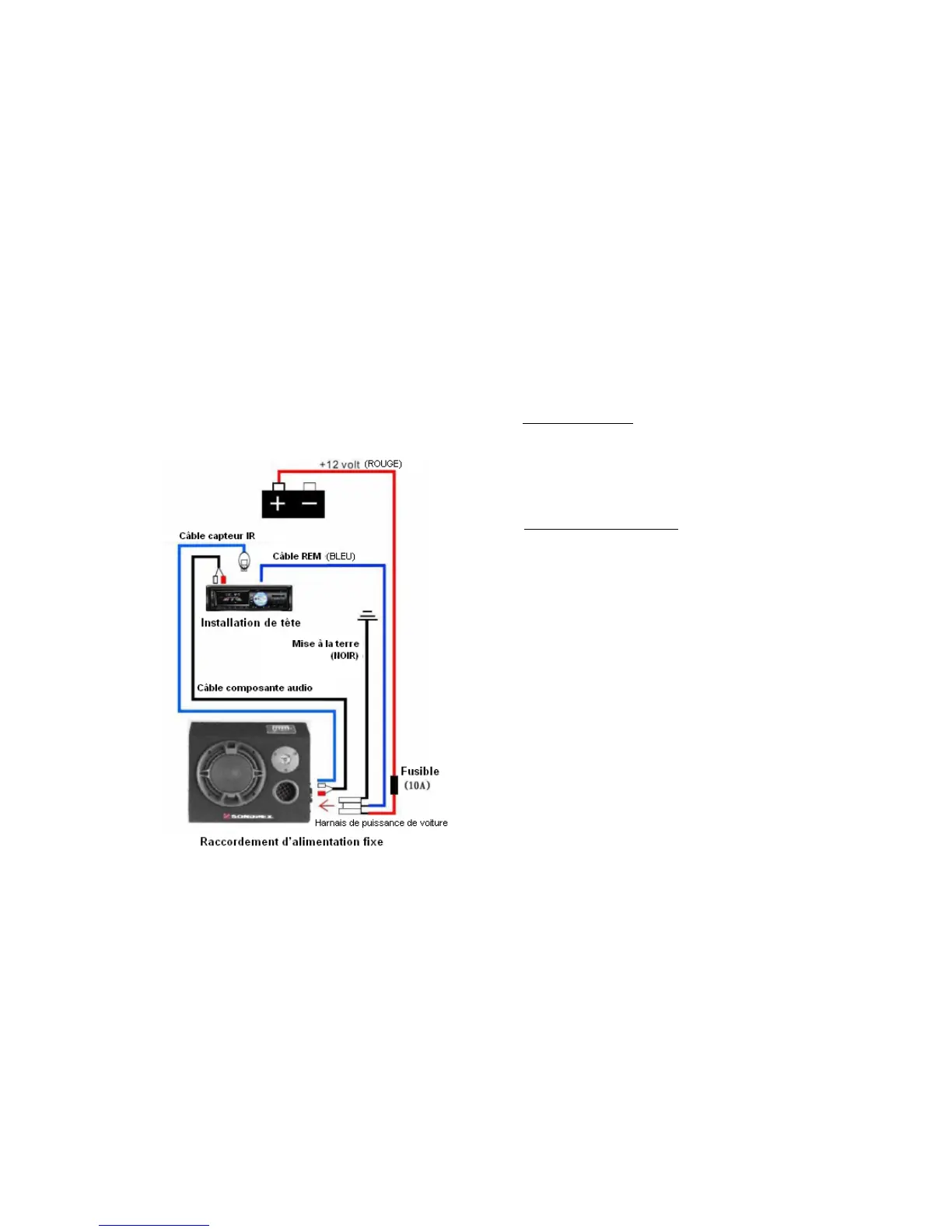 fixe à partir de la batterie de votre voiture, veuillez lire les