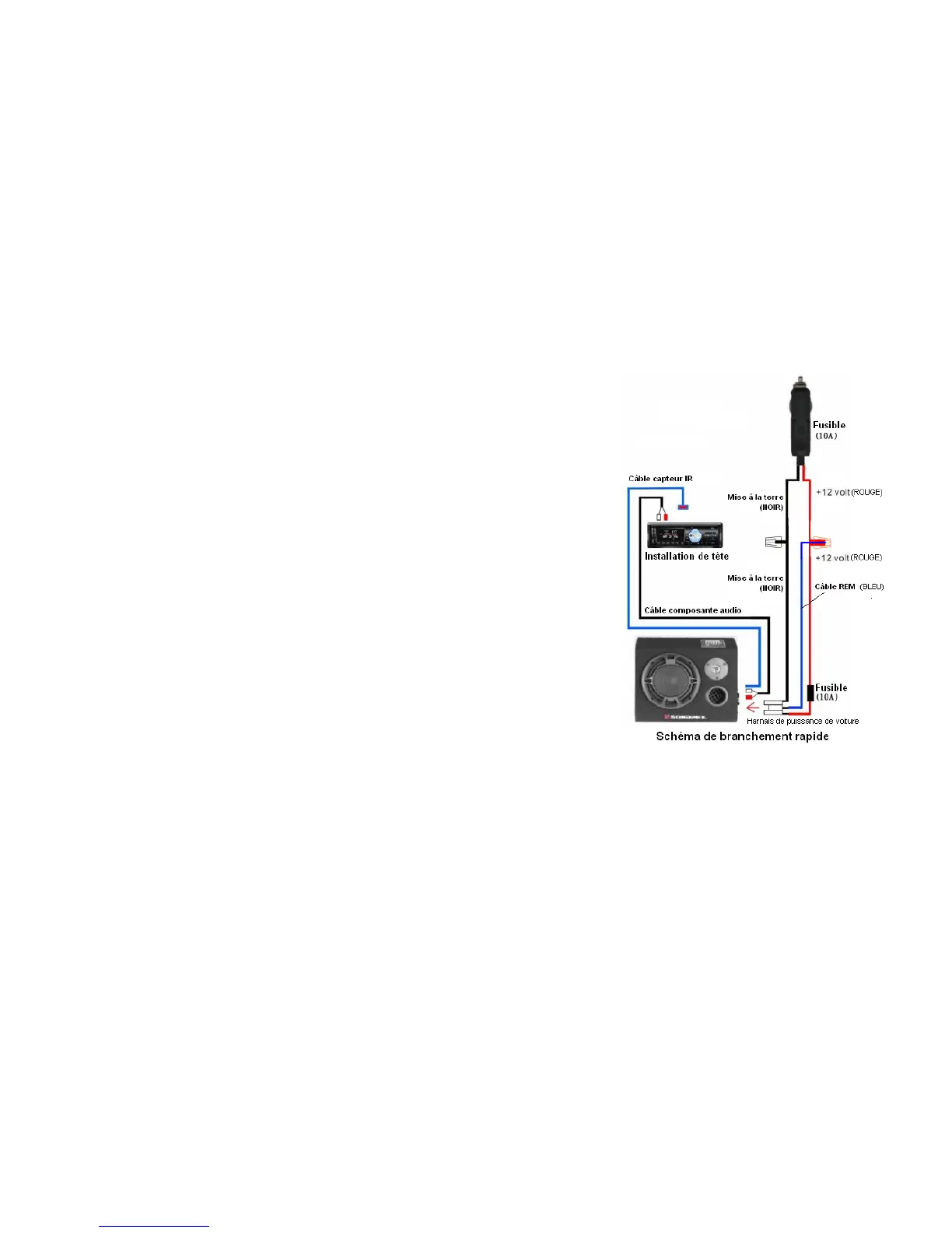 câble CC12V (rouge) de l’adaptateur allume-cigare.