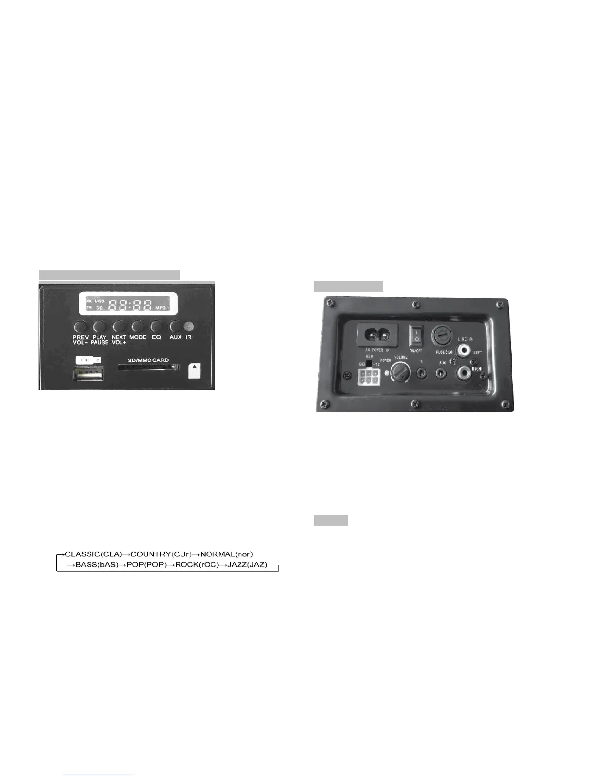 5. EQ: MP3 Equalizer (Only works in USB/SD mode); Sound Field Pattern: