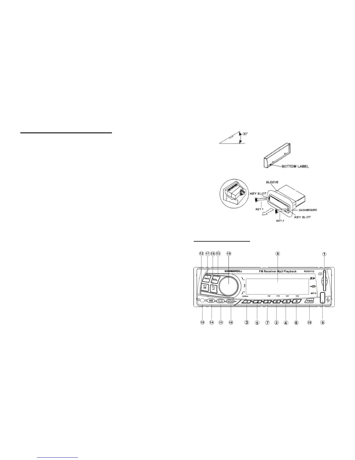 · If installation angle exceeds 30° from horizontal, the unit might