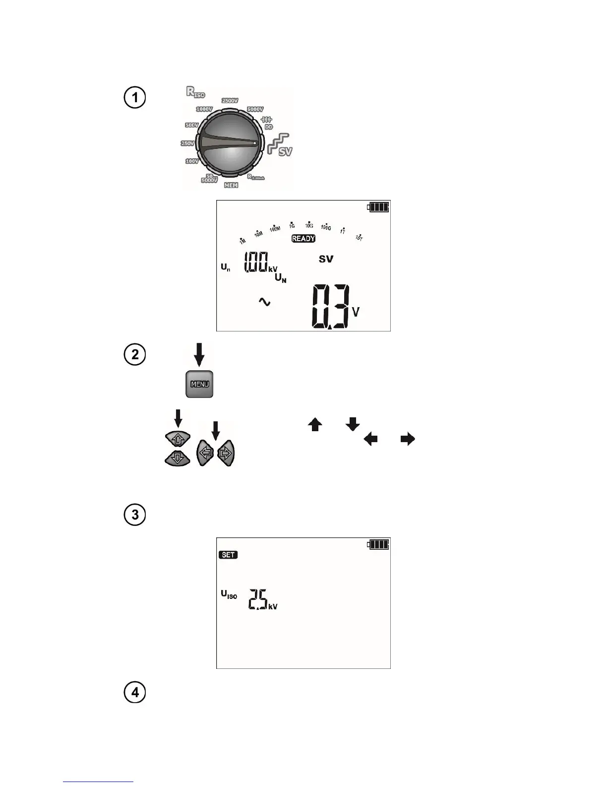 maximum (final) measurement voltage: 1 kV, 2.5 kV and 5 kV,
