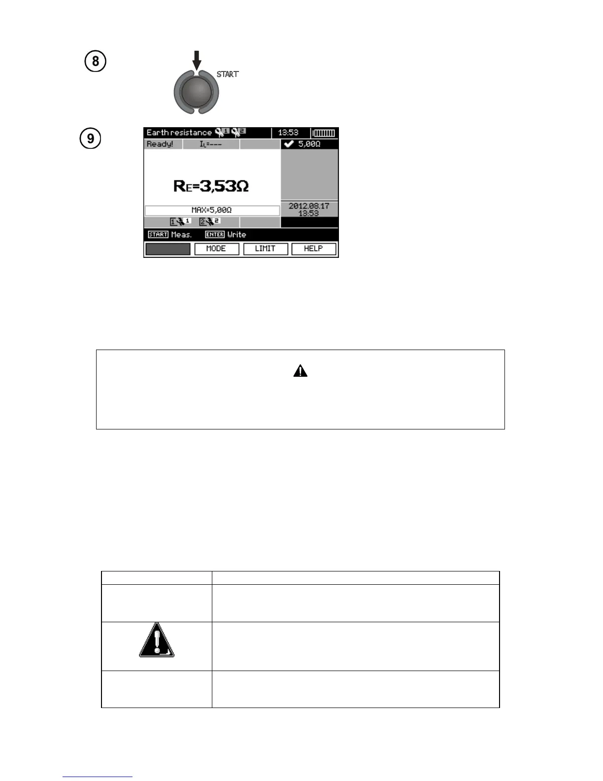 Press STARTpush-button to start the measurement.